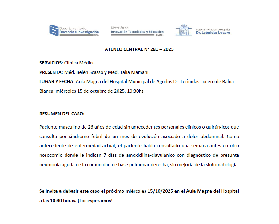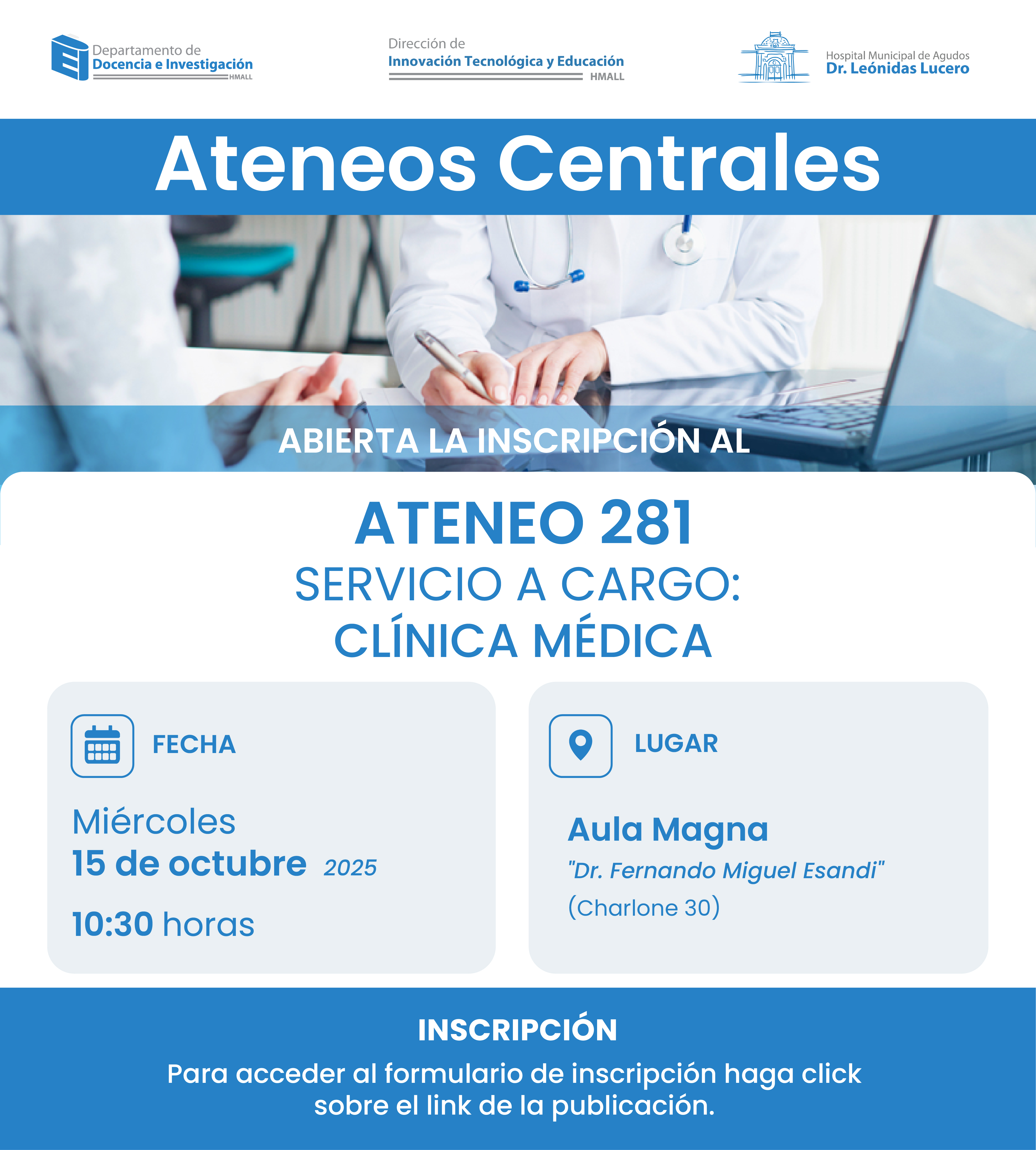 Fecha y lugar: 24 de octubre del corriente en el Aula Magna "Dr. Fernando Miguel Esandi".