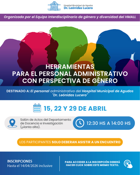 Informamos que se encuentra abierta la inscripción al Curso “Herramientas para el personal administrativo con perspectiva de género”, organizado por el Equipo interdisciplinario de Género y Diversidad del Hospital Municipal de Agudos "Dr. Leónidas Lucero".
